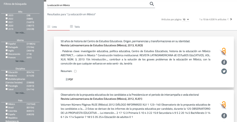 Por ejemplo sí buscamos sobre La educación en México encontraremos estas fuentes de información o artículos sobre el tema.